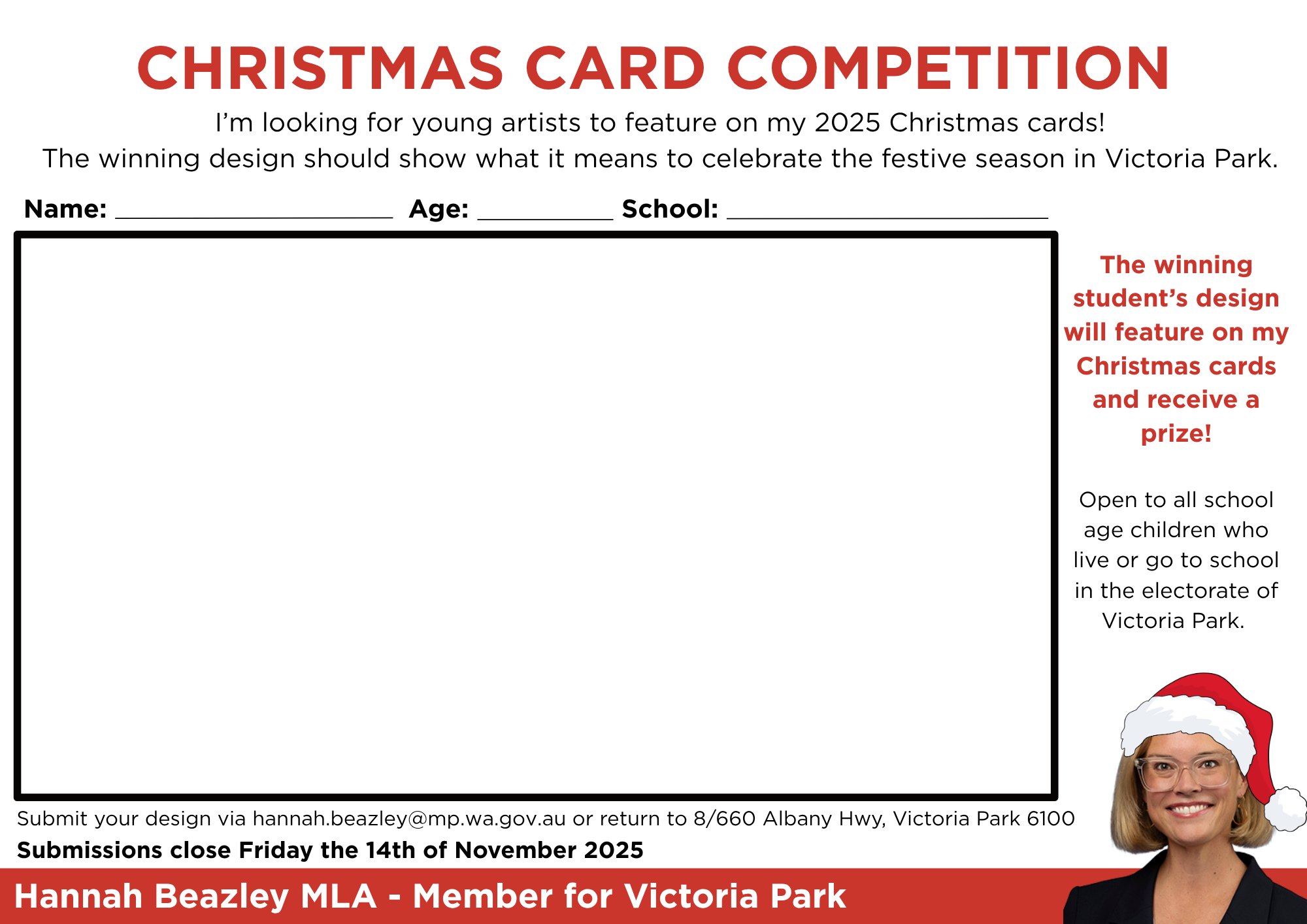 Open to all school-age children who live or go to school in the electorate of Victoria Park.